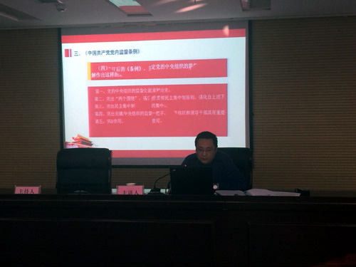 講座的內(nèi)容立足全面從嚴(yán)治黨,堅(jiān)持將紀(jì)律挺在前面的要求,圍繞黨的紀(jì)律特別是政治紀(jì)律,對(duì)《中國(guó)共產(chǎn)黨廉潔自律準(zhǔn)則》、《中國(guó)共產(chǎn)黨紀(jì)律處分條例》以及《中國(guó)共產(chǎn)黨黨內(nèi)監(jiān)督條例》進(jìn)行了解讀和分析,內(nèi)容充實(shí)、條理清晰、重點(diǎn)突出。講座圍繞黨員、干部在工作生活中容易觸碰的“雷區(qū)”,還列舉了“禮尚往來(lái)不能這樣來(lái)”,“6類(lèi)飯局不能去”、 “如何操辦紅白喜事””等具體問(wèn)題的表現(xiàn)形態(tài),結(jié)合市紀(jì)委近年來(lái)查處的一些黨員違法違規(guī)的案件,提醒廣大干部員工要防微杜漸,時(shí)刻保持清醒的頭腦,不能觸碰紀(jì)律紅線。