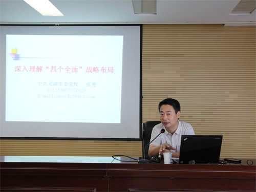 為進(jìn)一步學(xué)習(xí)領(lǐng)會(huì)習(xí)近平總書記“四個(gè)全面”戰(zhàn)略布局的重要論述,8月22日上午,公司邀請(qǐng)市委黨校教育長(zhǎng)、市委講師團(tuán)副團(tuán)長(zhǎng)張勇教授為公司全體員工作了一場(chǎng)題為“深入理解四個(gè)全面戰(zhàn)略布局”的精彩報(bào)告。